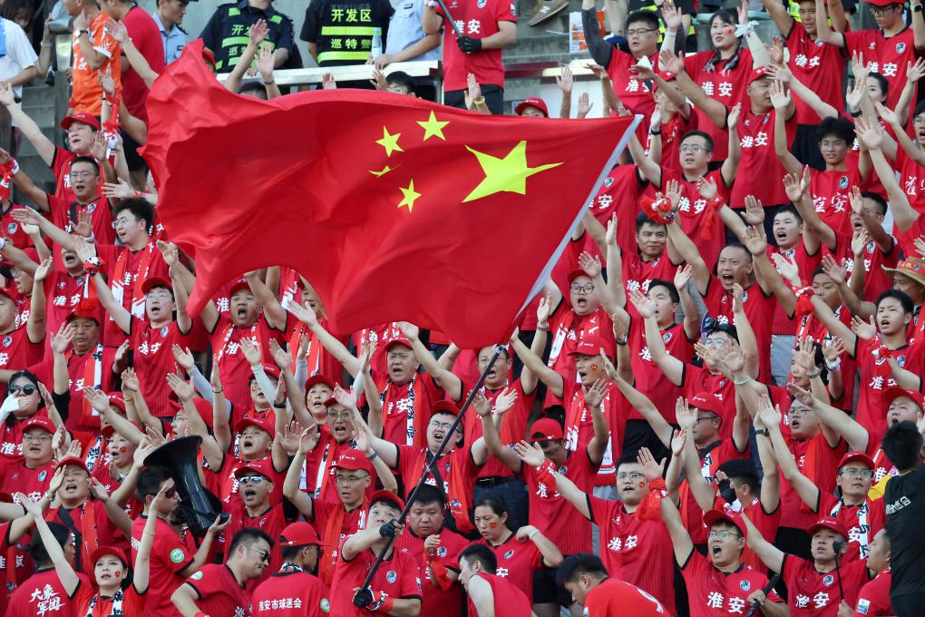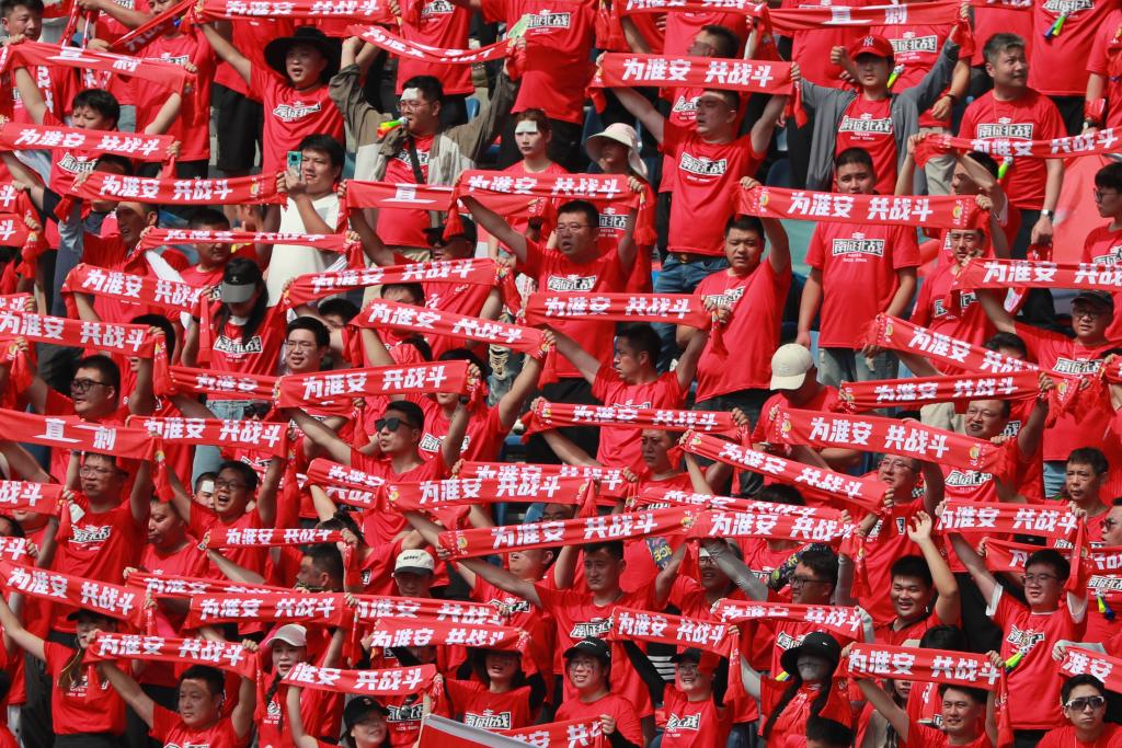 六个月辗转十三城,最难忘第七轮淮安客战无锡。漕运门广场上,集聚观赛的球迷无惧高温、热情似火。
