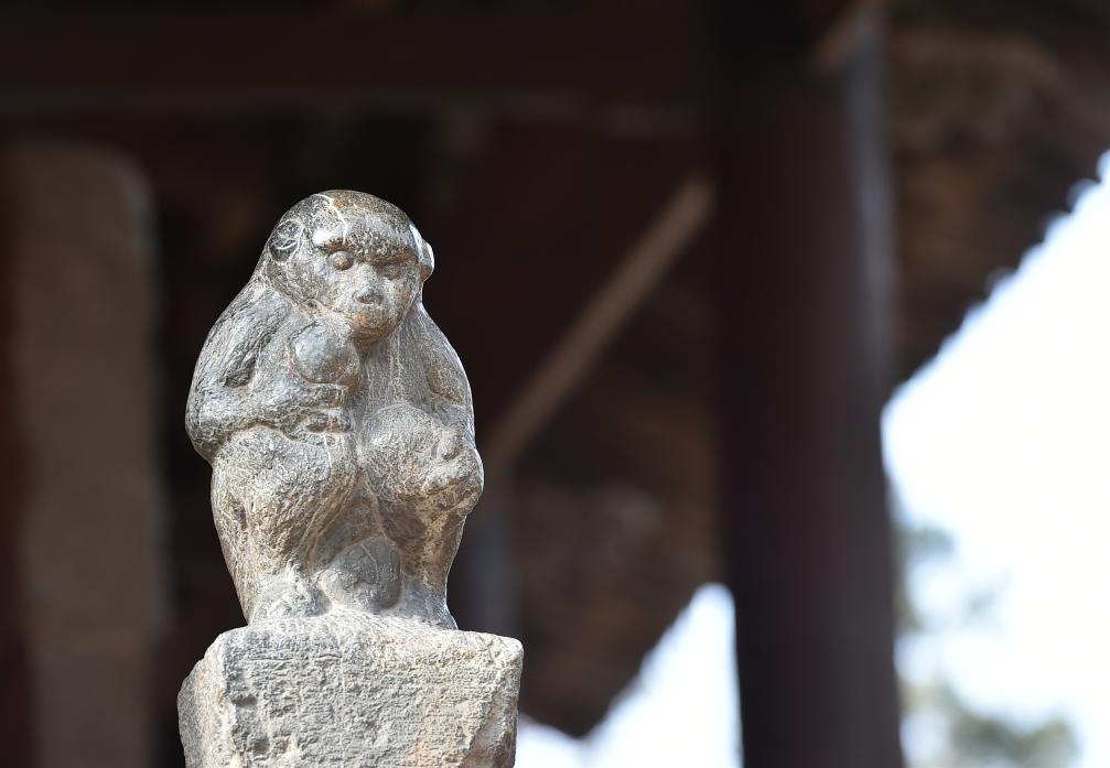 这是山西省运城市解州关帝庙内与猴有关的石雕。