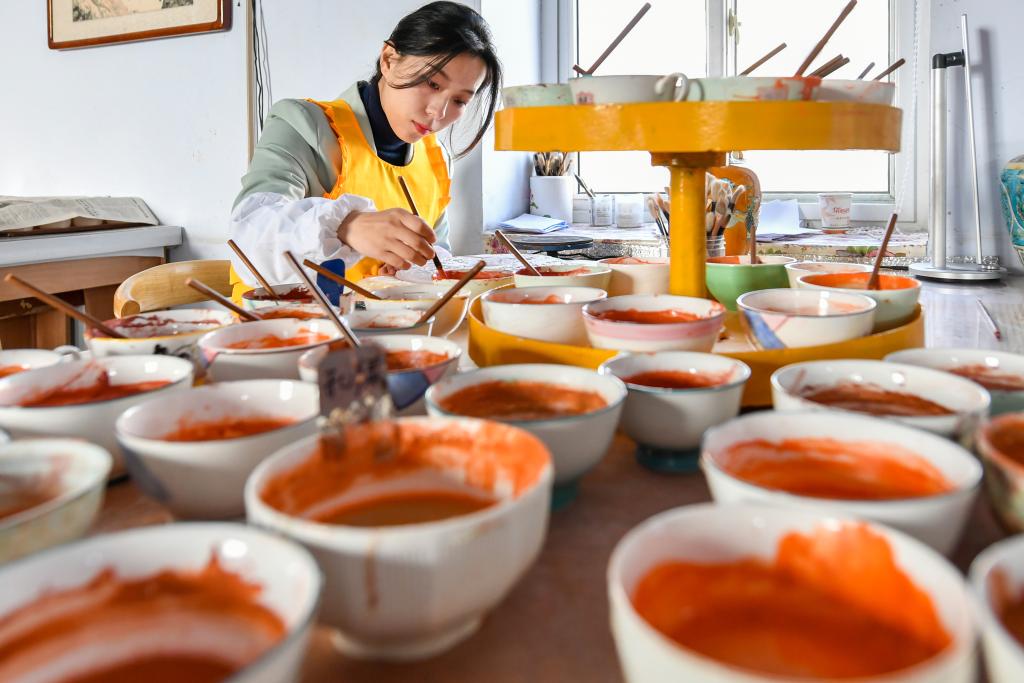 这是12月2日在山西省晋城市玉皇庙拍摄的彩塑牛。