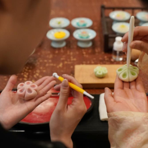 唐果子,是起源于唐代的传统特色糕点,佐茶而食,其造型精致、色彩丰富,曾在唐代宫廷贵族中流行。在西安,有着多年烘焙工作经验的“80后”李欢,一次偶然的机会与唐果子结缘。2020年,李欢与志同道合的伙伴成立公司,创立了“开元风雅”品牌,李欢也成为了品牌的主理人。她和团队埋首于唐代饮食文献之中,行走于各大博物馆内,从唐代文物的花纹图案中汲取灵感,结合健康饮食和现代口味需求精心调整配方,成功“复现”出一枚枚精巧的唐果子,受到人们的欢迎。