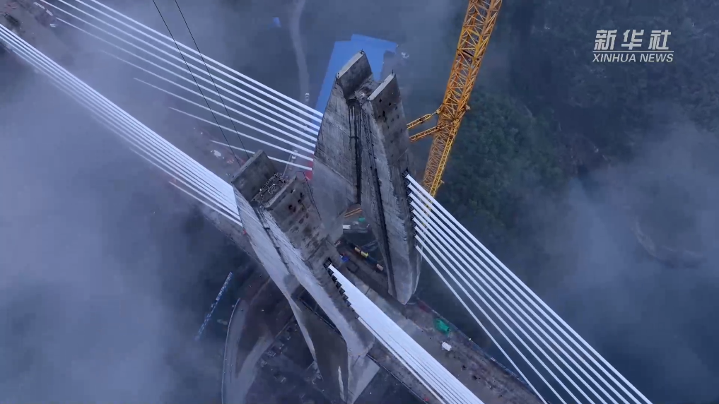 湘江特大桥横跨喀斯特地貌V型峡谷,采用三塔斜拉刚构设计,总长723.3米,主跨235米,创下全国单线货运铁路第一长连续梁桥纪录。