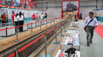 9月27日,一名小朋友在比赛现场观看龙形面塑。