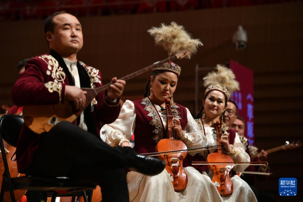 10月7日,演员在音乐会现场演奏《草原狂想曲》。