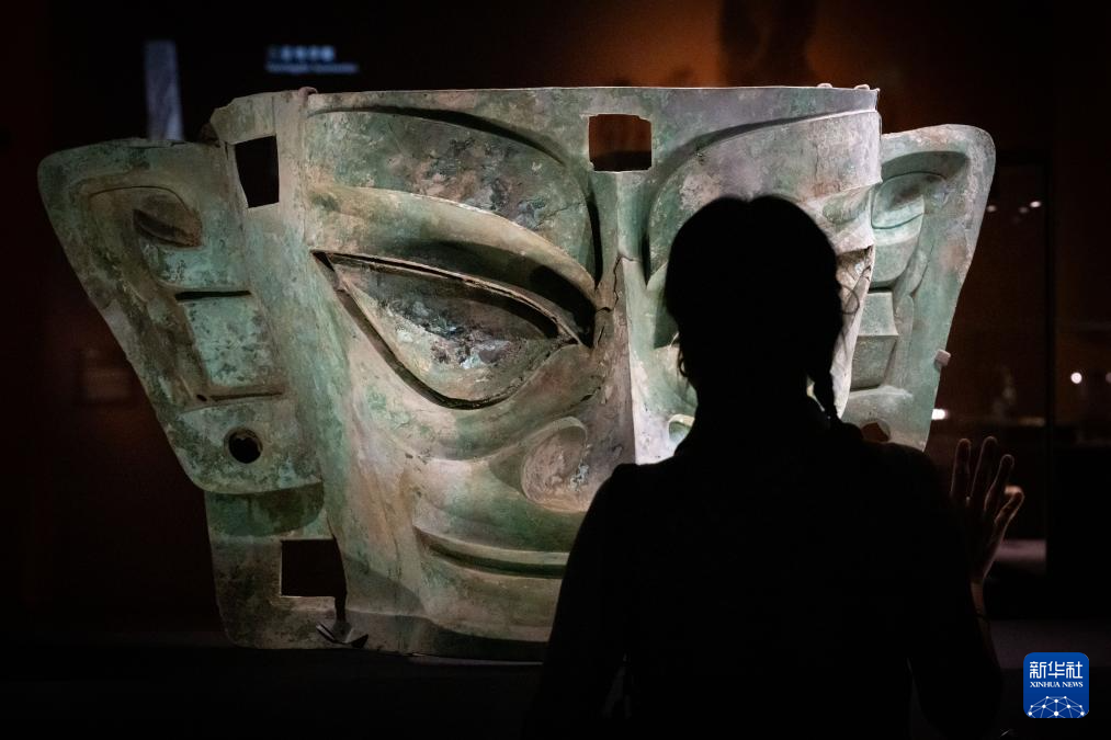 2023年9月26日,一名女士在香港故宫文化博物馆“凝视三星堆——四川考古新发现”特展媒体预展上参观。新华社记者 朱炜 摄