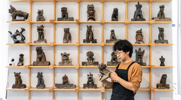 11月18日,敦煌研究院文物保护技术服务中心工作人员利用刷子对夯筑面进行修整,使其更好地与遗址墙体保持一致。