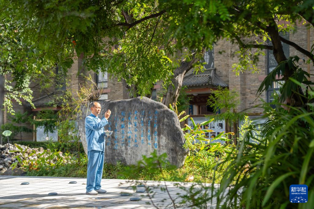 11月20日,李国伟在保山市永子棋院永昌阁前远眺。
