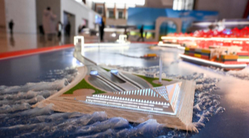 这是在“筑基强国路——中国制造‘十四五’成就展”上展出的深中通道模型(12月29日摄)。