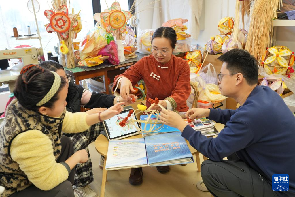 12月30日,在“篾匠姑娘”工作室工作的村民制作产品。