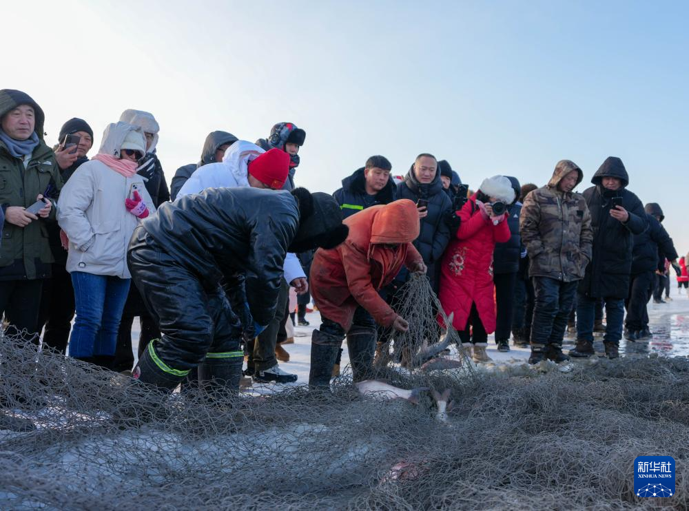 1月8日,吉林·查干湖第24届冰雪渔猎文化旅游节在捺钵广场拉开帷幕。查干湖之上,人工凿冰、马拉绞盘、冰下走网等渔猎技艺有序展开,引来各地游客。