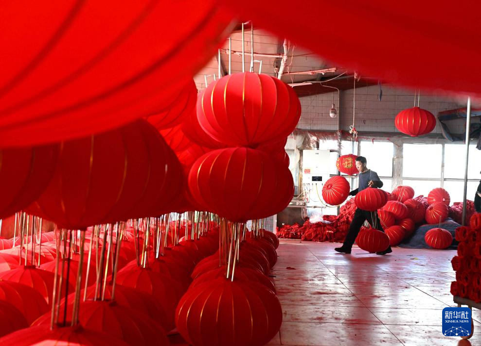 岁末年初,河北省石家庄市藁城区屯头村内一派繁忙景象,当地村民赶制藁城宫灯,供应春节市场。藁城宫灯是河北省级非物质文化遗产,目前已有18个系列300多个品种,产品远销全国各地。