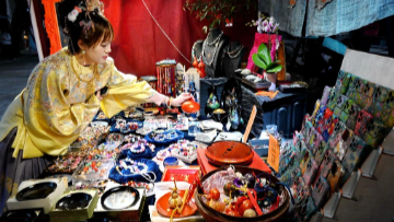 2月12日,市民在河南省济源市一处春节临时市场选购饰品。