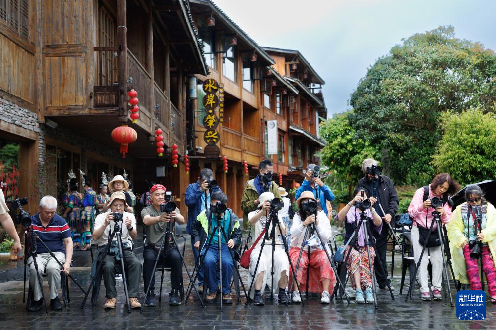 4月20日,来自广州的旅行团团员在肇兴侗寨内拍摄。