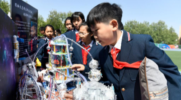 中国铁路沈阳局集团有限公司长春高铁基础设施段职工利用北书房·新华历史书店场地进行世界读书日主题读书分享活动(4月21日摄)。