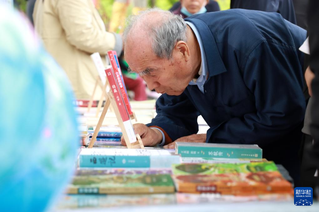 4月22日,河南省安阳市内黄县市民在选购图书。