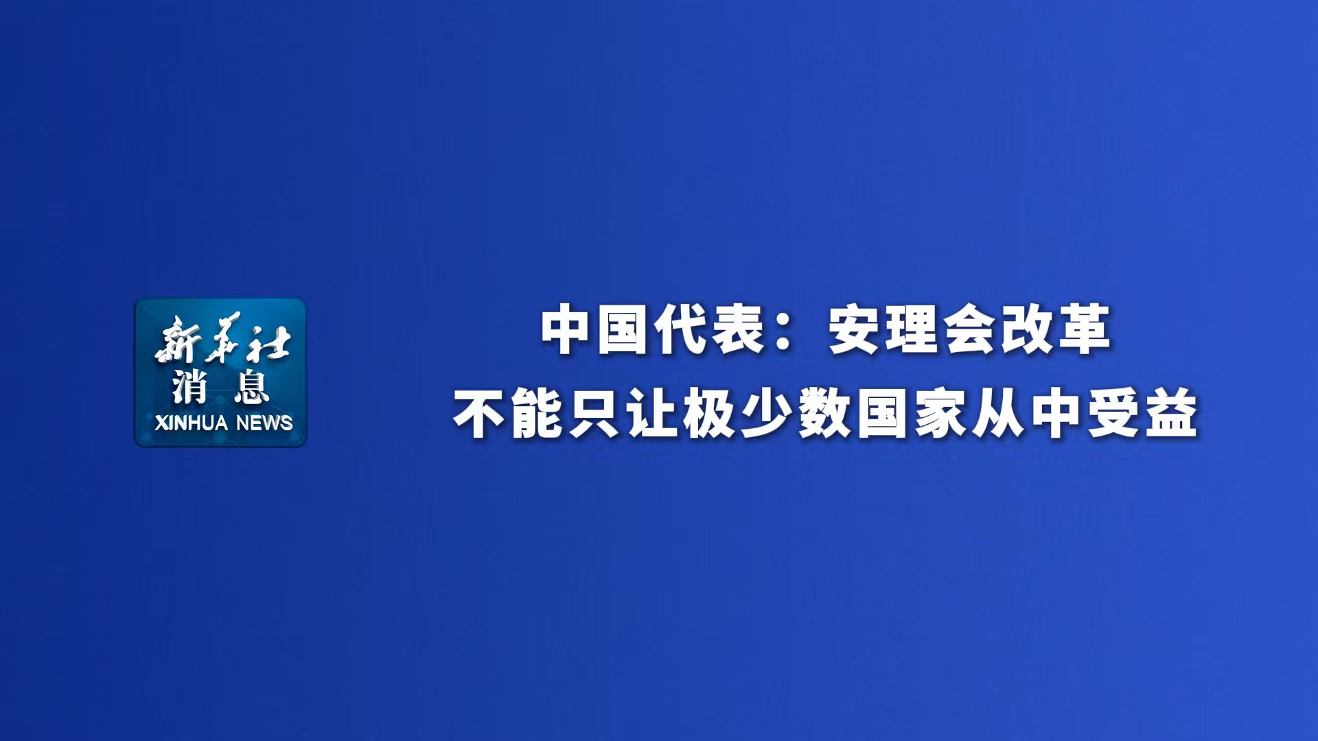 新华社消息丨中国代表:安理会改革不能只让极少数国家从中受益