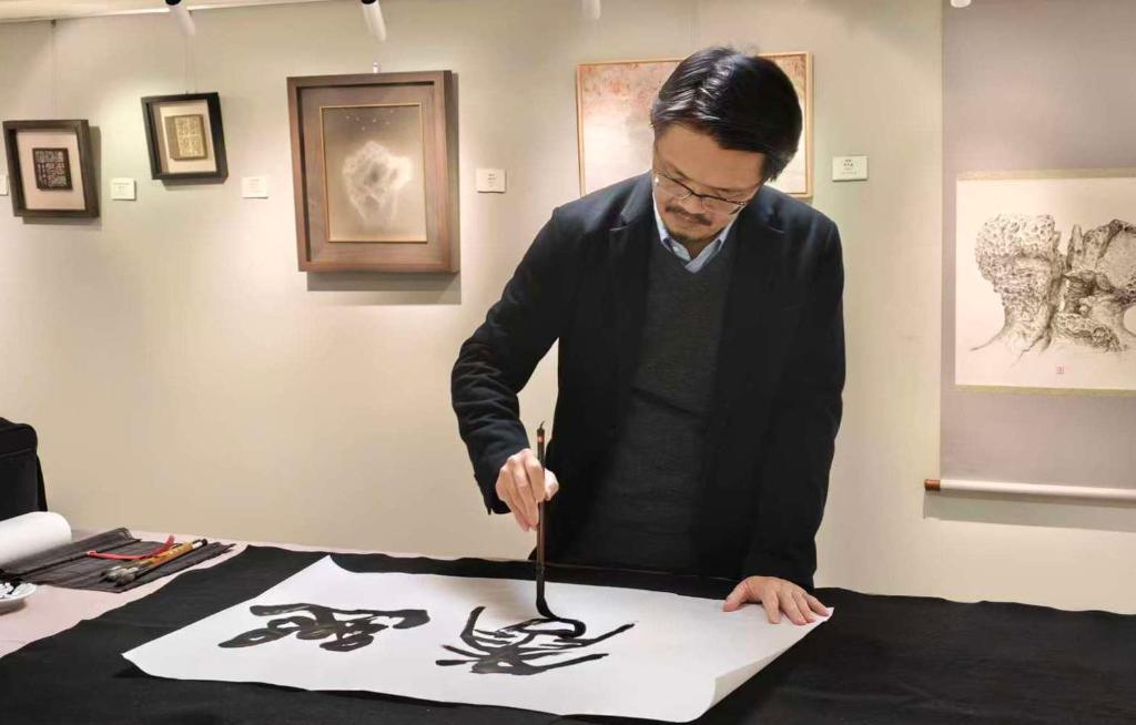 12月15日,艺术家现场挥毫。新华社记者 王承昊 摄