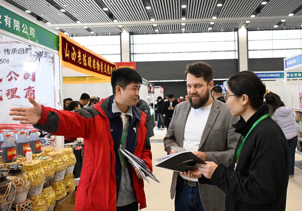 12月19日,客商在博览会一家绿色有机蔬菜展位参观。