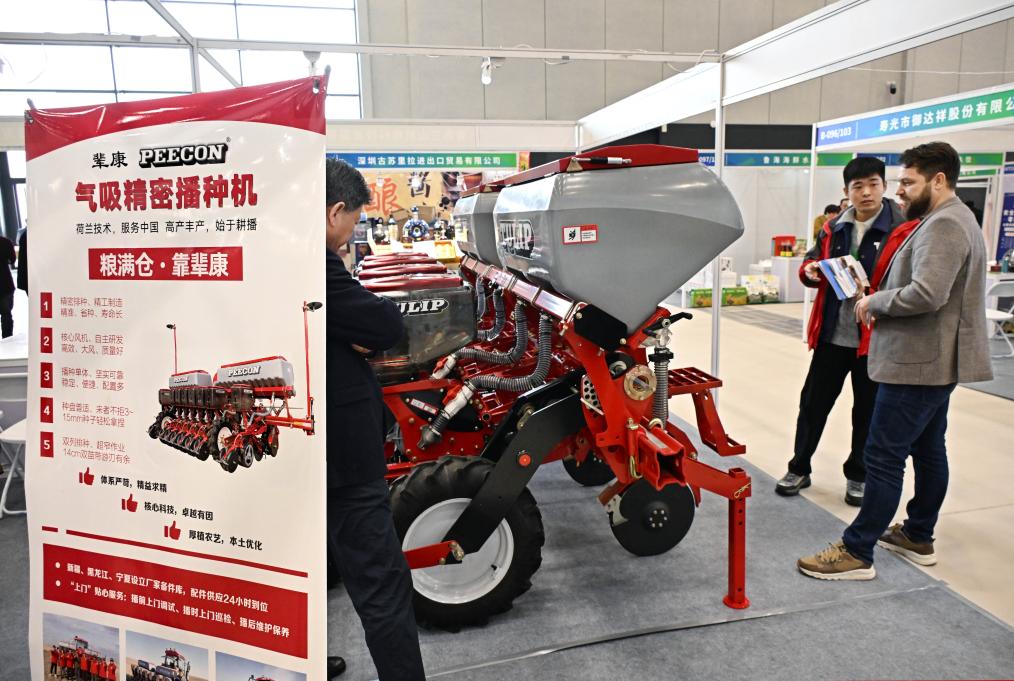 12月19日,客商在博览会上观看旋转种植设备演示。