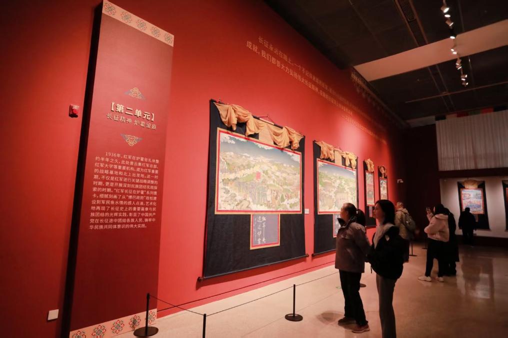 “镌刻在唐卡中的红色记忆——郎卡杰唐卡创新艺术展”1月6日在中国非物质文化遗产馆开幕。展览以“红色+非遗”的创新实践,生动展现中华民族团结奋进的时代精神。