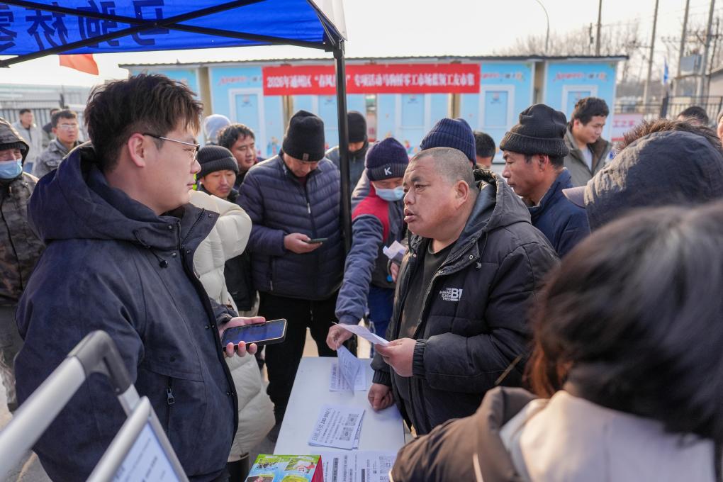 “暖冬送岗 双节稳工”专项活动是北京市破解节日用工难题的一项具体举措,也是推进零工市场规范建设、服务升级的实践。在马驹桥零工市场专场招聘会现场,企业与求职者面对面洽谈,招聘岗位涵盖物流分拣、物业安保、工厂普工、酒店餐饮、家政服务等行业,为春节期间保障用工、稳定就业市场提供坚实保障。
