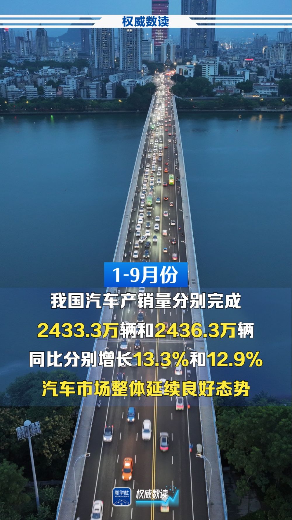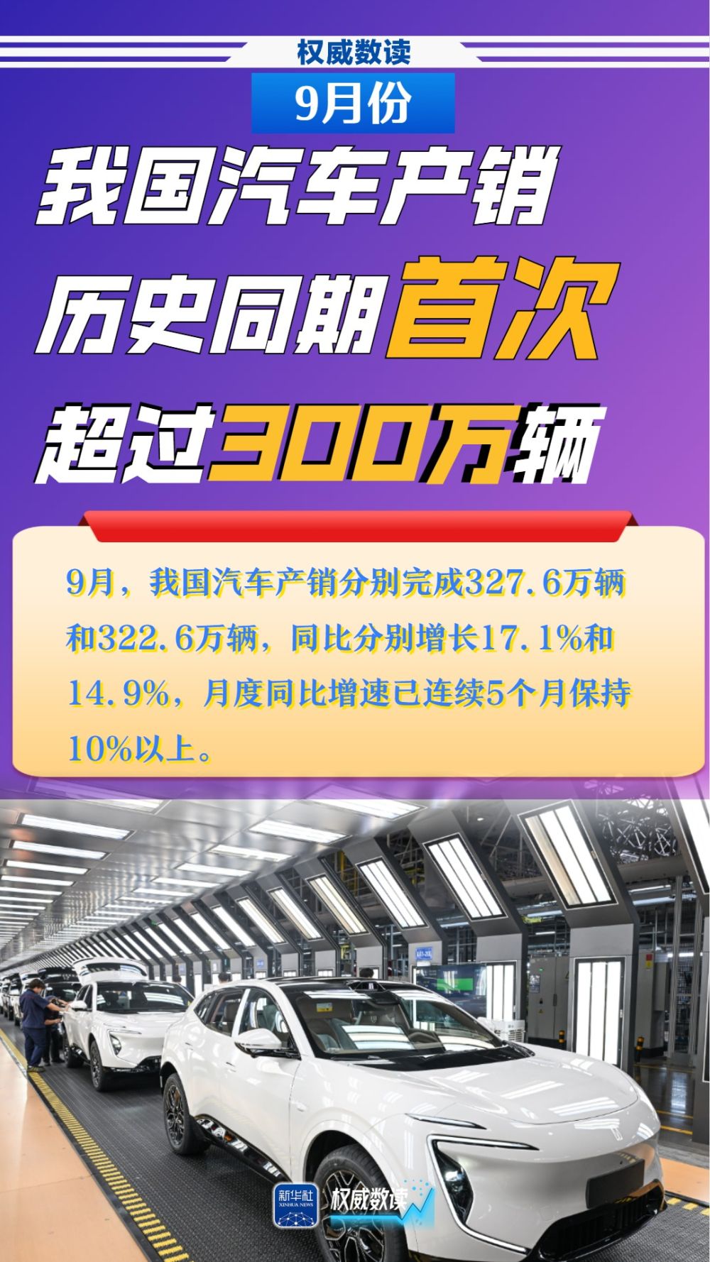 中国汽车工业协会14日发布数据,1至9月我国汽车产销量分别为2433.3万辆和2436.3万辆,同比分别增长13.3%和12.9%。9月,我国汽车产销历史同期首次超过300万辆,产销月度同比增速已连续5个月保持10%以上。