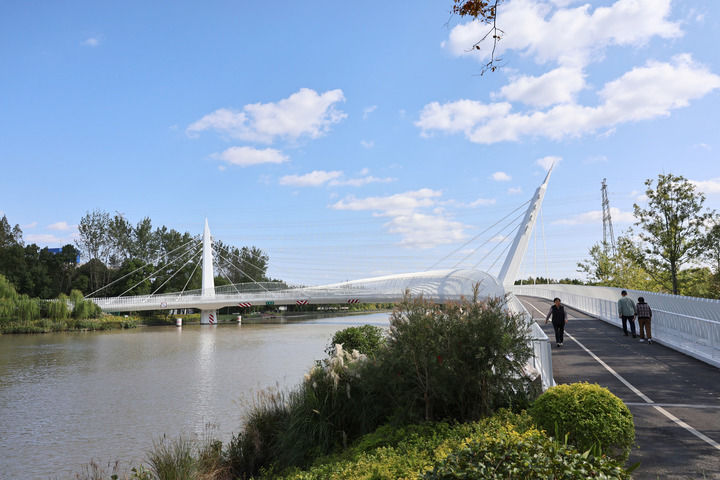 2025年10月28日,这是位于浦东新区陆家嘴水环上的水舞桥。