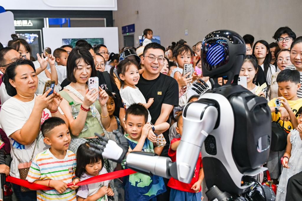 9月7日,观众在智博会上参观人形机器人。新华社记者王全超摄