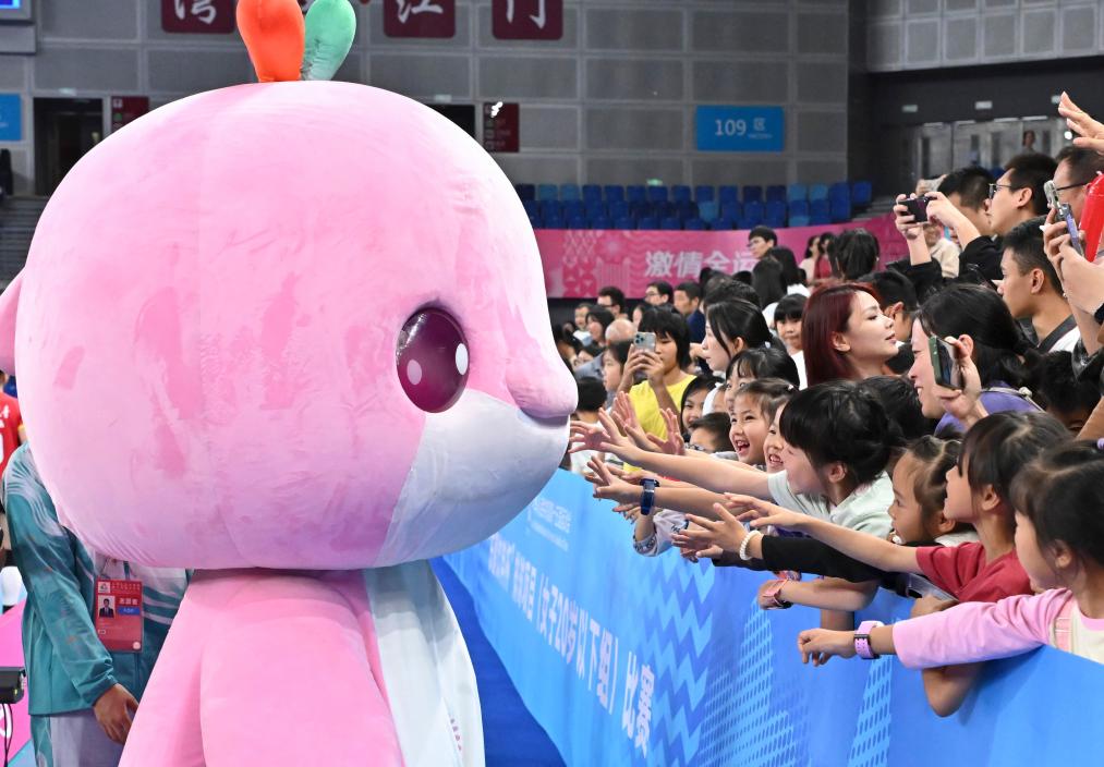 十五运会和残特奥会上,吉祥物“大湾鸡”的火爆出圈,折射出赛事经济新的方向。赛会举办期间,吉祥物“喜洋洋”和“乐融融”持续火爆,据统计,十五运会和残特奥会特许商品的上市总货值已突破8亿元、超600万件,并有望达到10亿元。