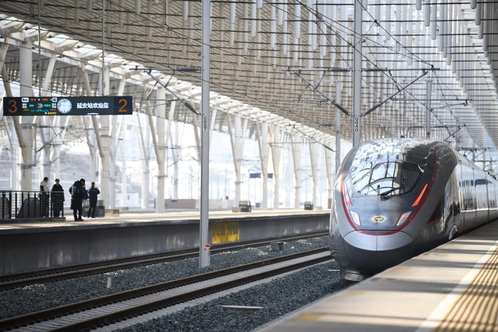 12月26日10点,随着C9309次“复兴号”智能动车组驶出延安站,西安至延安高铁开通运营,革命老区延安迈入“高铁时代”。
