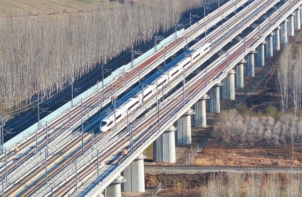 “十四五”期间,天津市高铁城际网建设实现跨越式发展,京唐、京滨北段、津兴城际铁路相继建成通车,形成“4条高铁通北京”的格局,“轨道上的京津冀”初步建成。新华社记者 李然 摄