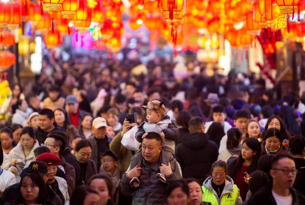 2026年2月17日,农历大年初一,人们在贵州省安顺市西秀区安顺古城历史文化街区游玩。新华社发(程洪凯 摄)