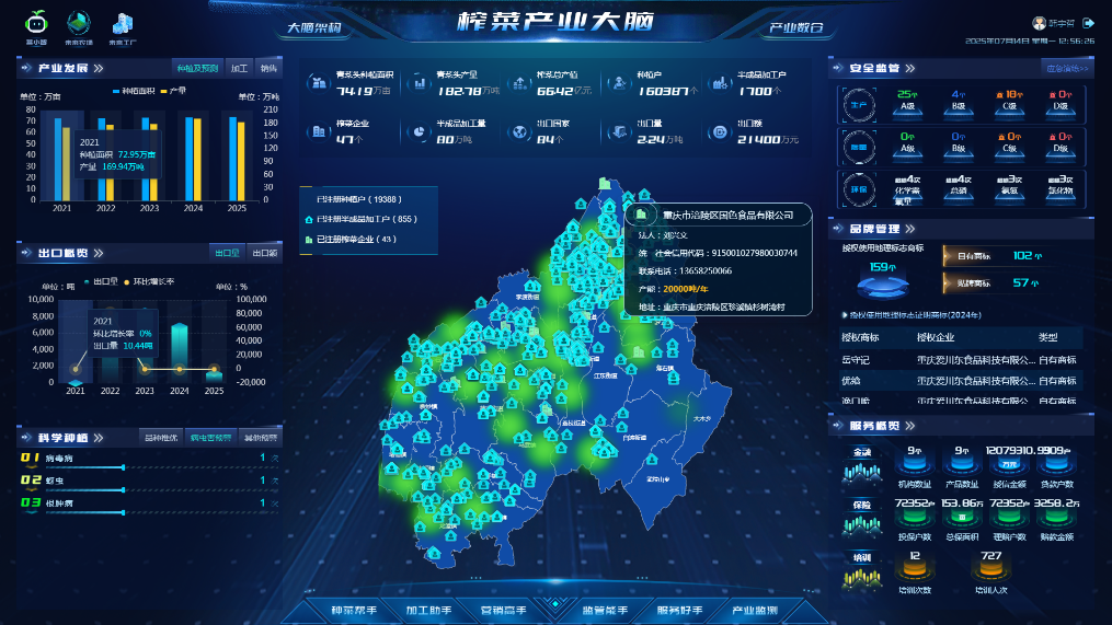 当地政府给出答案。搭建榨菜“产业大脑”,构建数据仓库、能力中心、多跨应用场景与产业“驾驶舱”,打通种植、加工、销售、监管全链条数据流,让数据成为产业升级的“新引擎”。