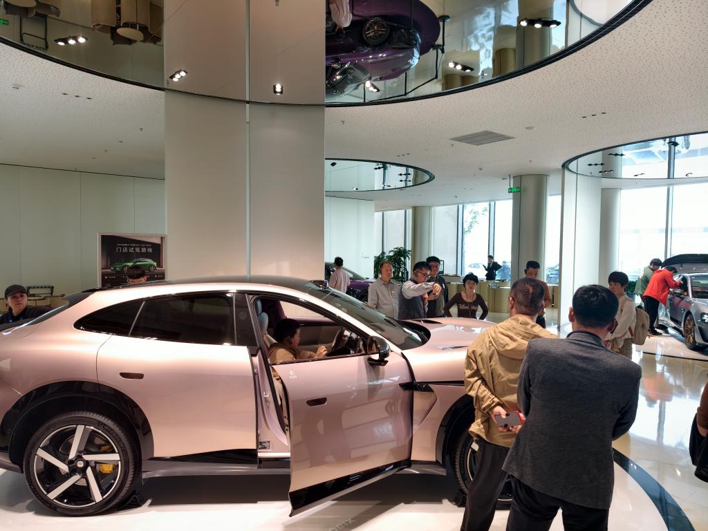 4月21日,在小米汽车工厂参观的游客正在试驾车辆。 新华社记者吉宁 摄