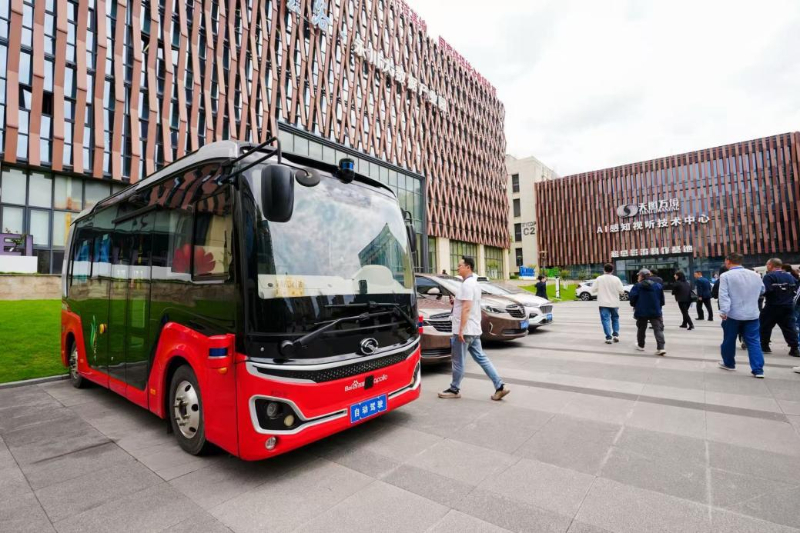 在永川区西部自动驾驶开放测试区域,一辆自动驾驶车缓缓驶入停靠点位,在输入指令后,车门关闭车辆启动,全车无驾驶员操控,依靠车路协同、智能感知与云端调度,自主完成行驶、避让、停靠和上下客。