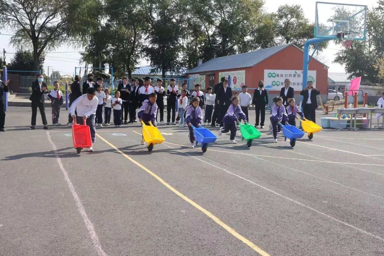 比赛环节,更是精彩纷呈。发展乡中心学校50米跑、企鹅漫步、100米跑、赶猪跑、立定跳远、200米跑、端球跑、比谁准、400米跑和4x100米接力等十个项目,覆盖了一至九年级的学生。曙光乡中心学校独轮车运南瓜、套圈摘果蔬、插秧比赛、春种秋收接力、30米拖球跑接力、篮球运球接力、60米跳绳跑、立定跳远、实心球投远、跳绳、足球障碍运球接力、拔河比赛等项目,全校学生都参与其中。