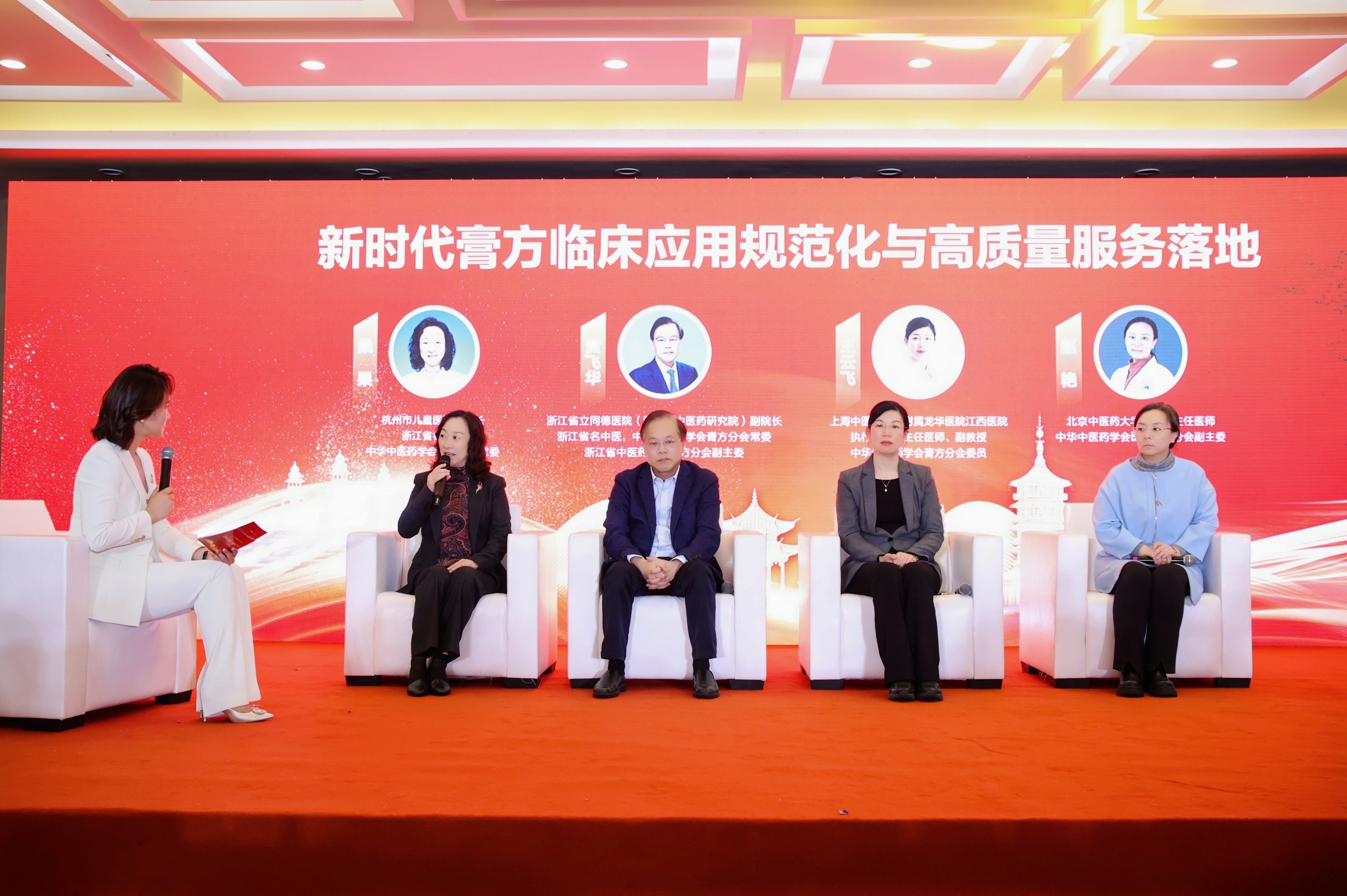 围绕新时代膏方临床应用规范化与高质量服务落地这一主题,杭州市儿童医院党委副书记副院长、主任中医师、中华中医药学会儿科分会常委桑杲,浙江省立同德医院(浙江省中医药研究院)副院长、浙江省名中医、主任中医师、中华中医药学会膏方分会常委、浙江省中医药学会膏方分会副主委黄飞华,上海中医药大学附属龙华医院科主任、江西省中医院副院长、中华中医药学会膏方分会委员王云飞,北京中医药大学教授、主任医师、中华中医药学会医史文献分会副主委赵艳参与圆桌讨论,从“临床辨证标准”“服务流程优化”“质量管控细节”等角度,分享自身的一线实践经验。