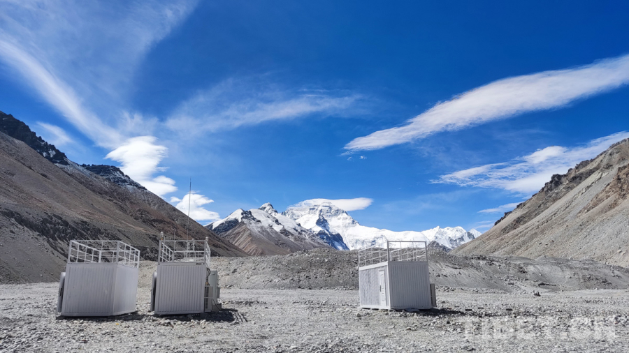 北京大学、西藏大学、中国科学院共同搭建的位于珠峰大本营的科学数据监测站 受访者供图