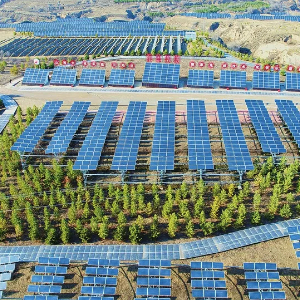 架设在灌木丛间的光伏电板。新华社记者 王怡静 摄