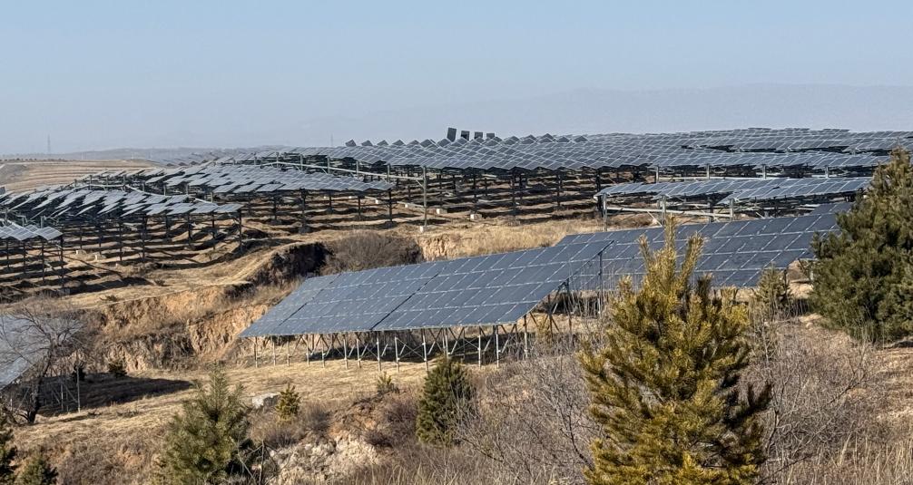 依山势而建的光伏电板。新华社记者 王怡静 摄