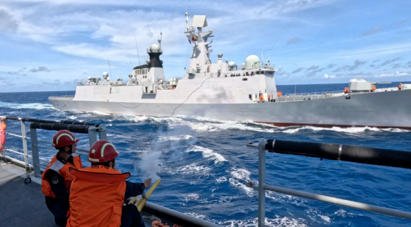 海军湖北舰开展实战化训练