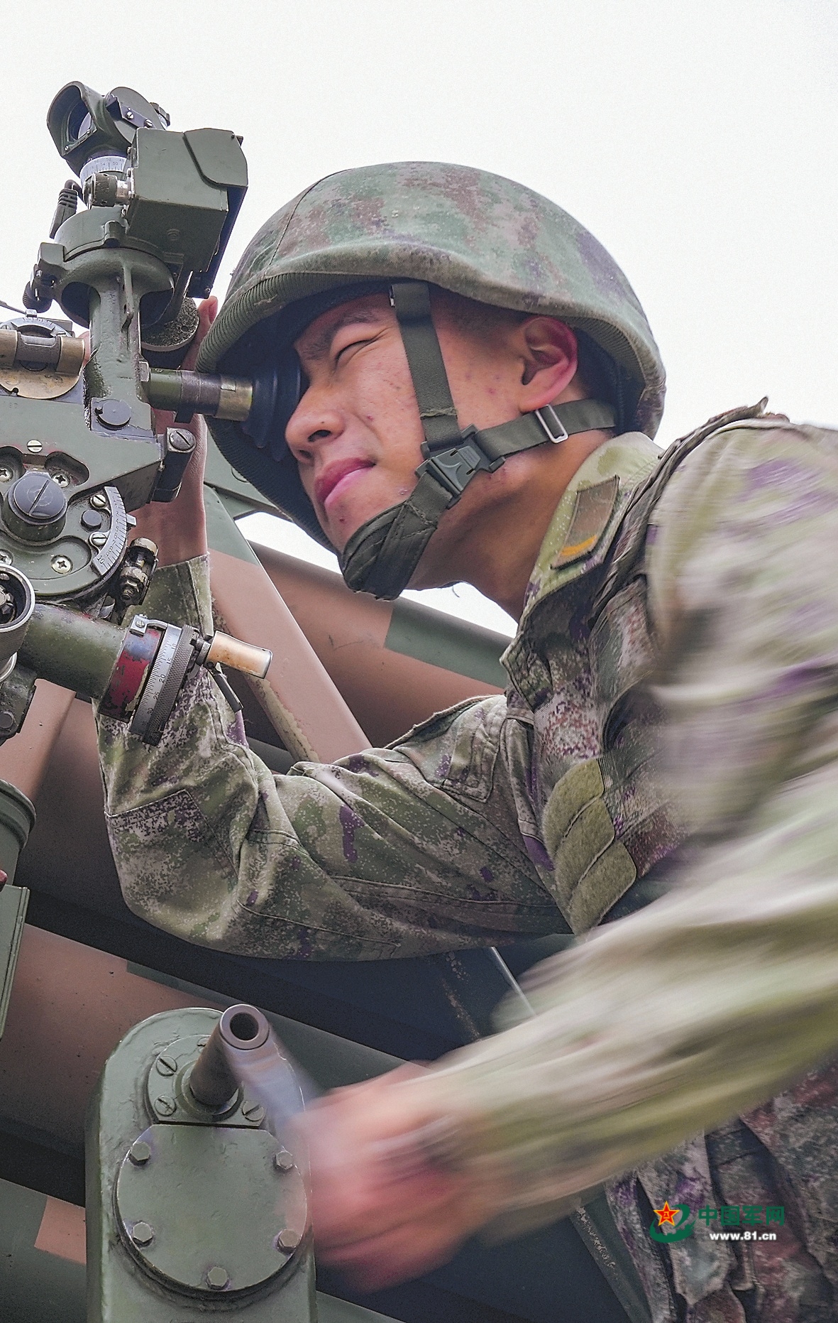 指挥员下达作战命令,各战位迅速完成弹药装填、目标搜索、测距瞄准、装定诸元等动作。“预备,放!”炮弹出膛,对目标展开火力打击。