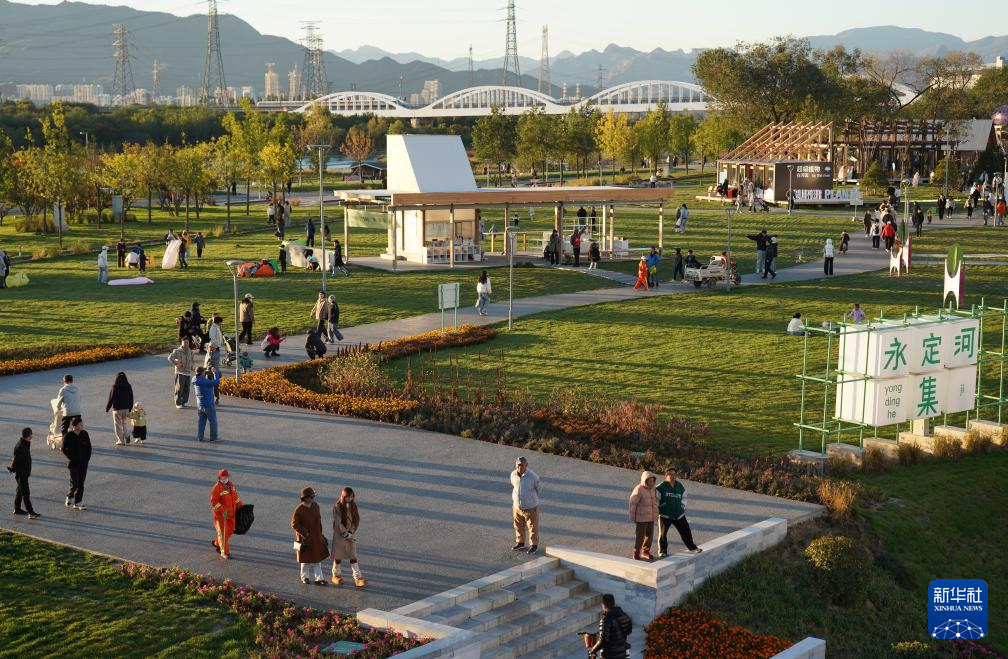 时值周末,许多游客来到位于北京市石景山区的“永定河集”,在这里逛市集,爬石景山,赏永定河畔风景,乐享秋日美好时光。