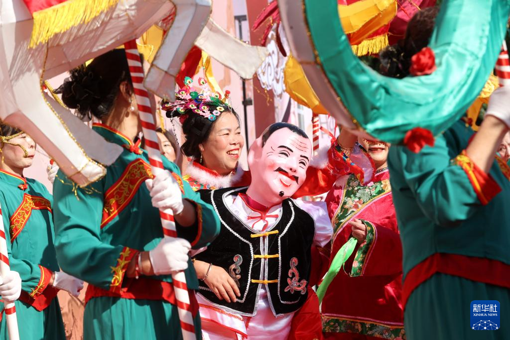 10月29日,民间艺人在浙江省湖州市德清县第十届舞阳侯会非遗巡游活动上进行民俗表演,庆祝重阳节。