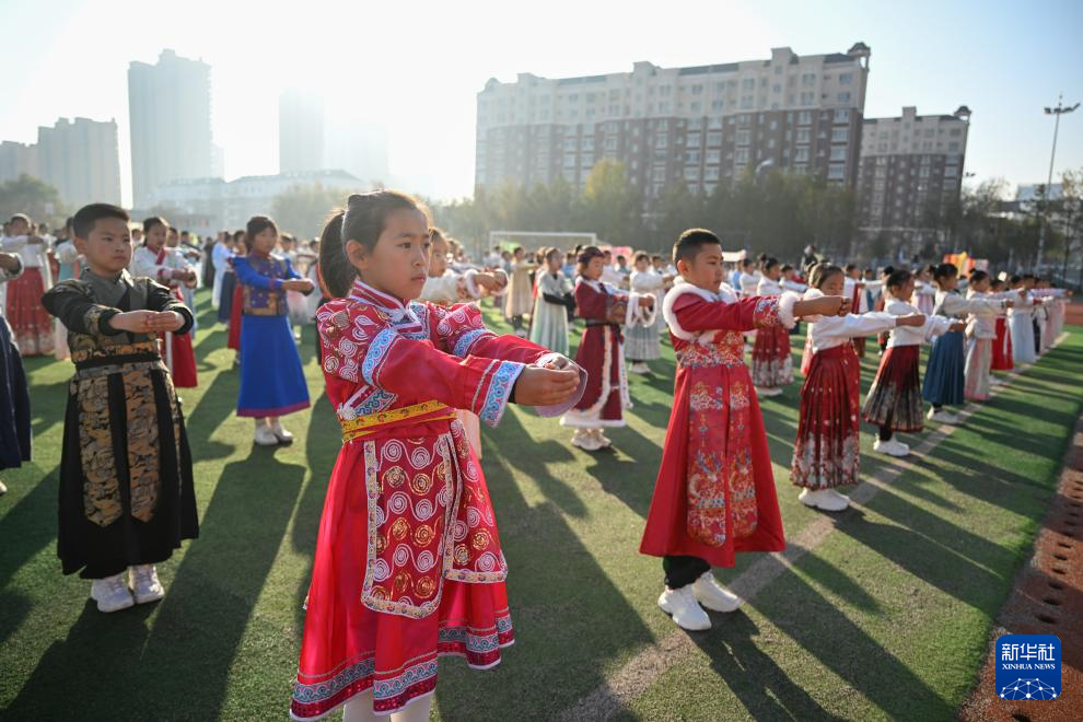 10月29日,学生在内蒙古鄂尔多斯市伊金霍洛旗第四小学表演。