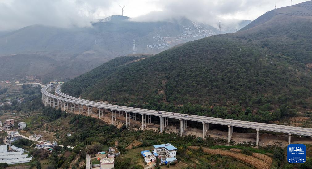 10月31日在云南省曲靖市会泽县拍摄的会巧高速公路(无人机照片)。