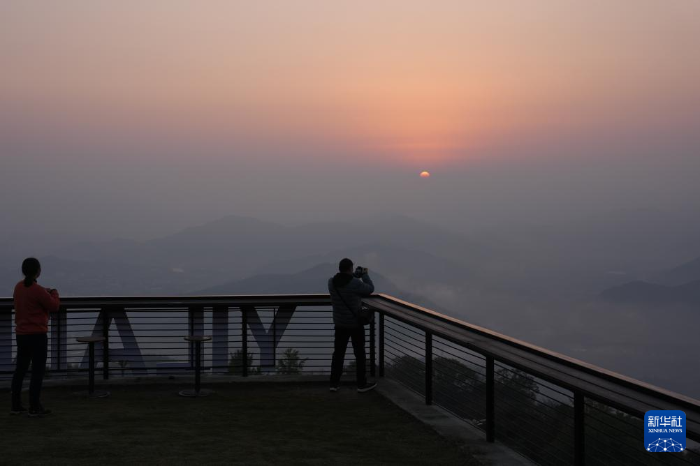 11月14日,游客在奉化区溪口镇东山村观赏日出。