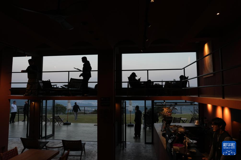 11月13日,游客在东山村“一览”咖啡馆休闲。2021年,民宿主徐娜辞去幼师工作返乡创业,并开办“一览”咖啡馆,吸引大批游客来村里打卡。