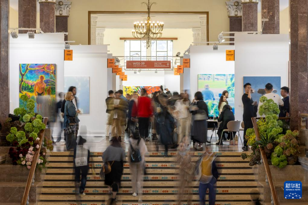 11月14日,观众在第十三届ART021上海廿一当代艺术博览会参观。