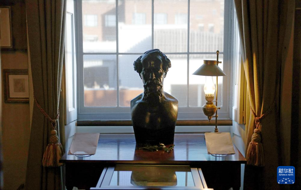 这是11月17日在英国伦敦狄更斯博物馆拍摄的狄更斯的书房。