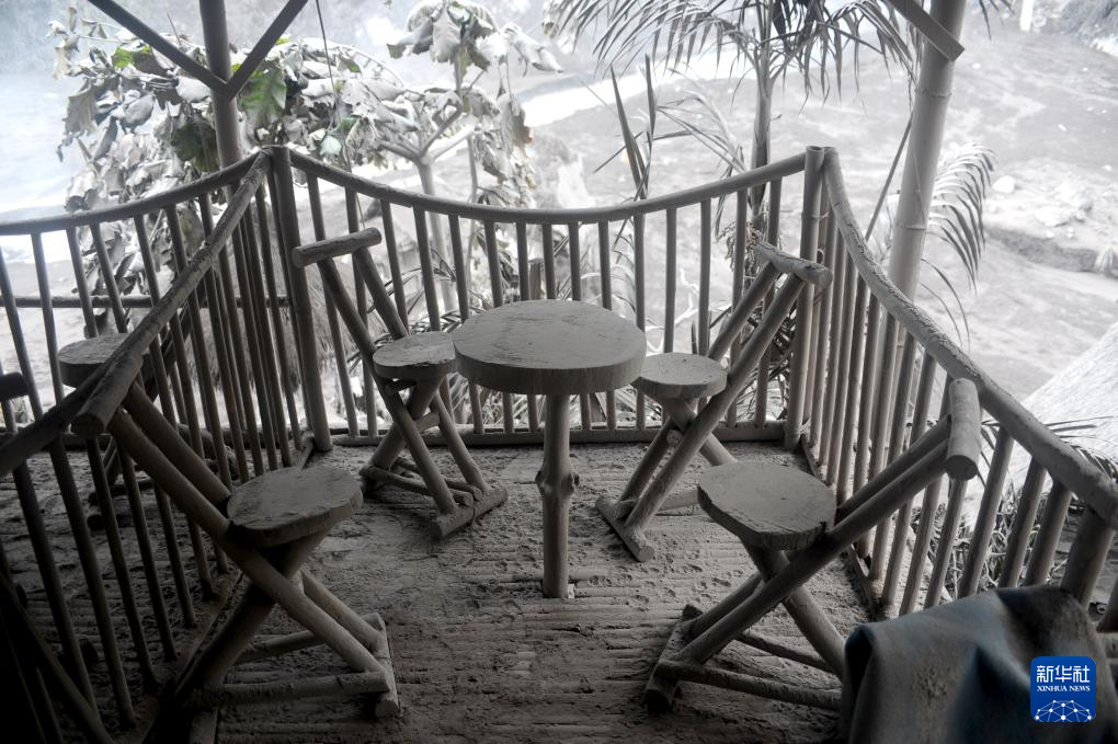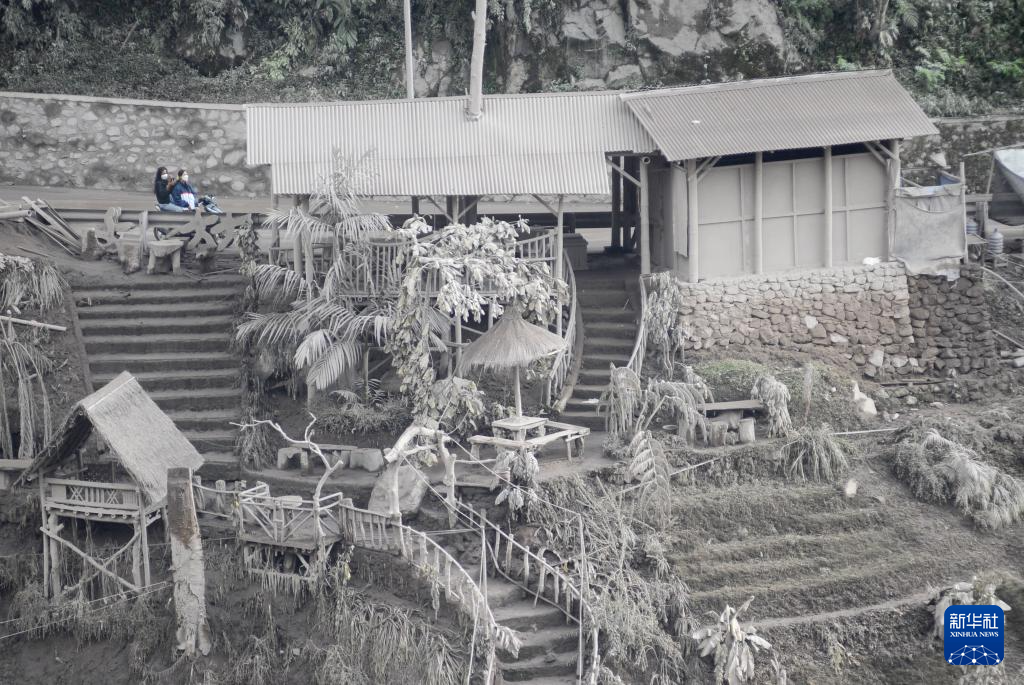 这是11月21日在印度尼西亚东爪哇省拍摄的被火山灰覆盖的村庄。